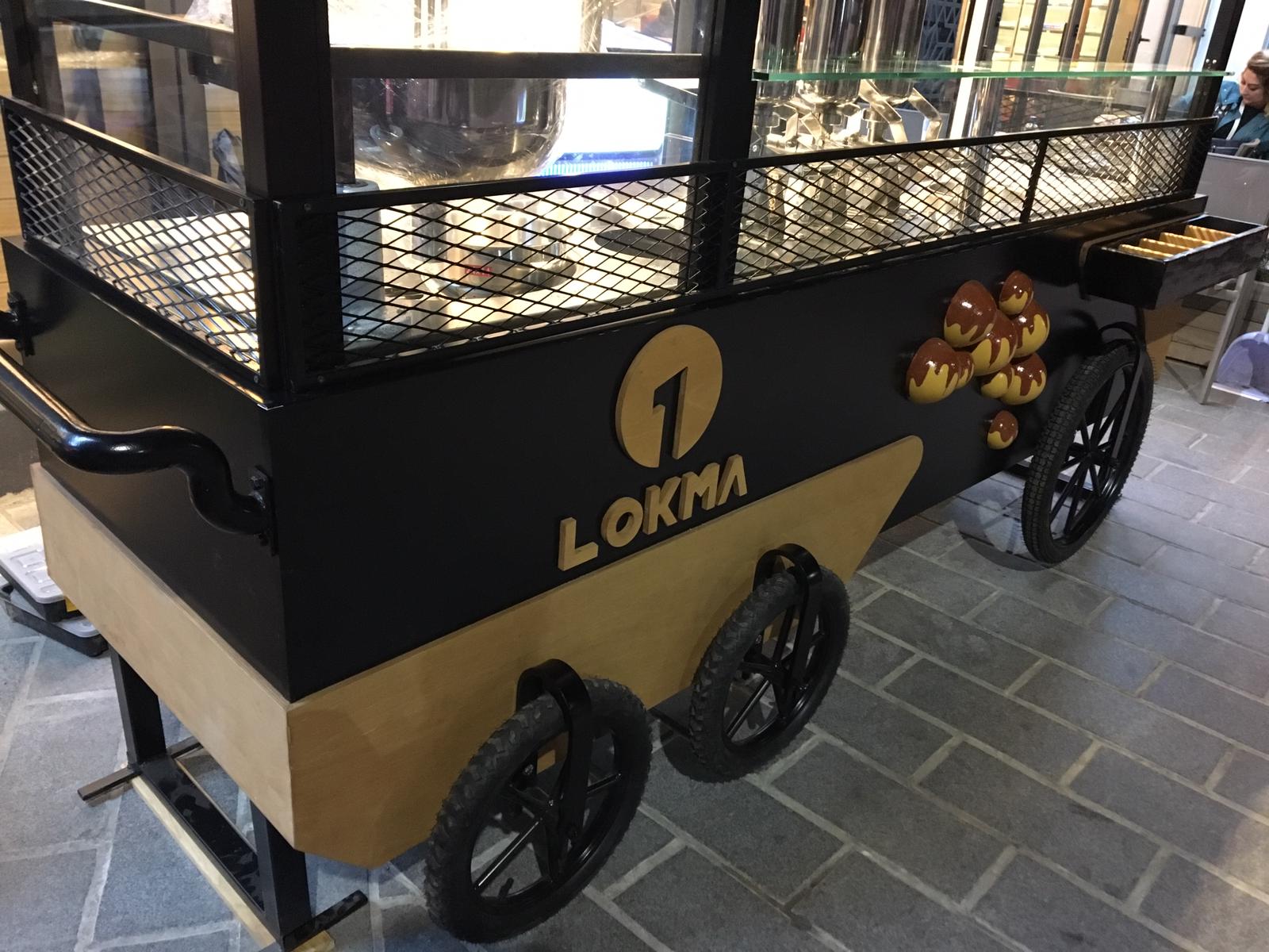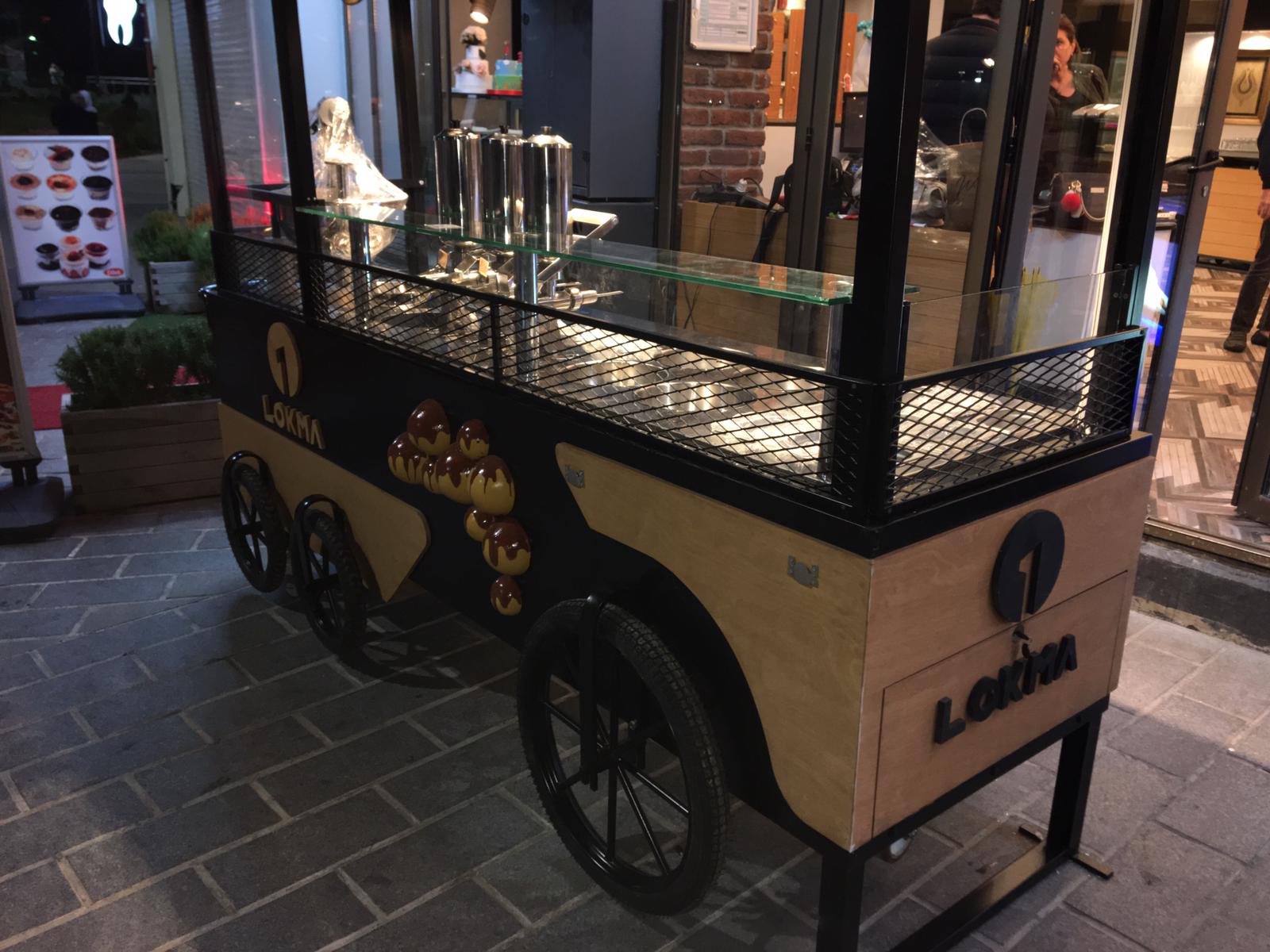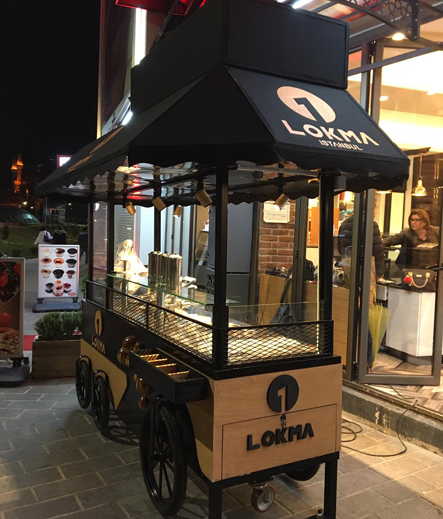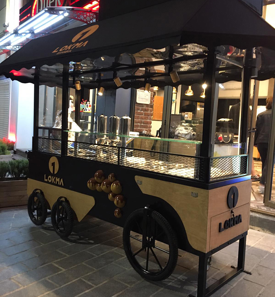 “1 Lokma İstanbul” tabelası ile tasarım ve üretim sürecini üstlendiğimiz Lokma Standı Kiosk Araba projesi. İş bu mobil stand tümüyle dekoratif, aynı zamanda fonksiyonel amaçlı üretilmiştir. Metal ve ahşabın uyumu ile dizayn edilmiş, retro tasarım konseptine sahiptir. Üretimi ve teslimatı yapılan Lokma Standı şu anda faal olarak hizmet vermektedir.
